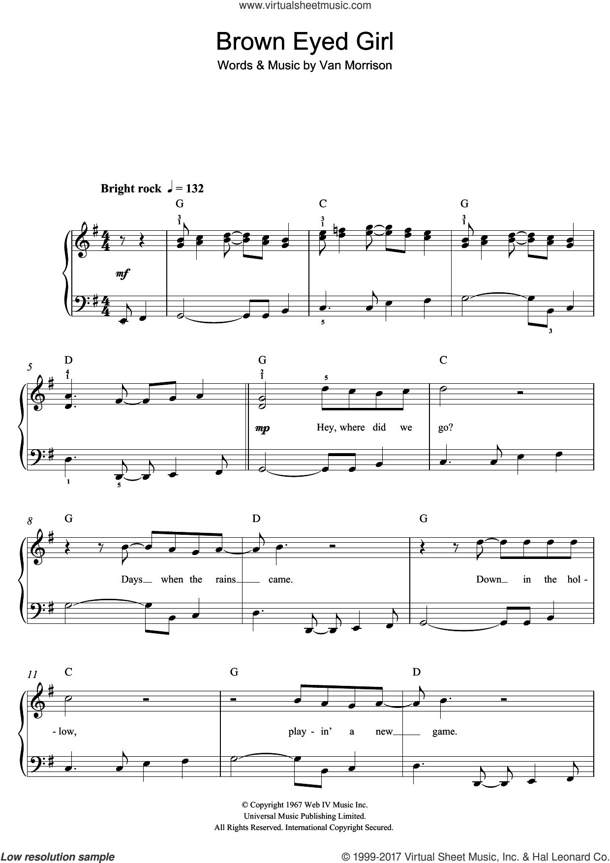 Van Morrison Brown Eyed Girl free piano sheets 8 PDF files available Download or print the PDF sheet music for piano of this rock soft rock and british r b song by Van Morrison for free