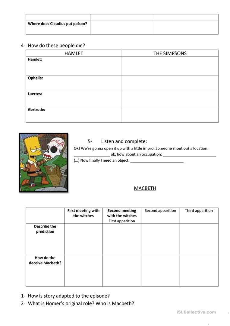 1 Free Esl Hamlet Macbeth Worksheets Hamlet Printable Worksheets