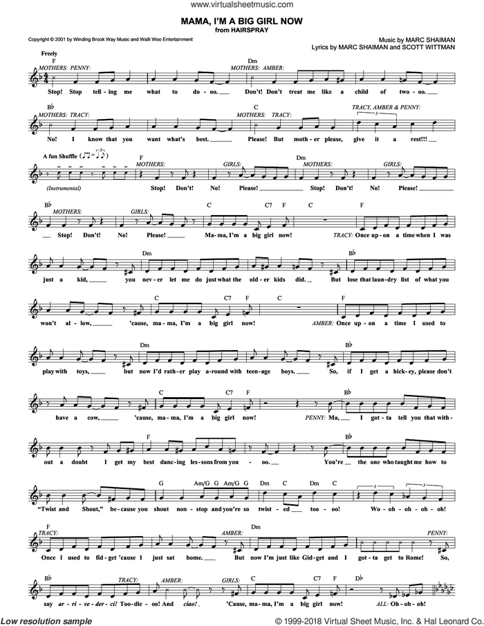 Mama I m A Big Girl Now from Hairspray Hal Leonard Online
