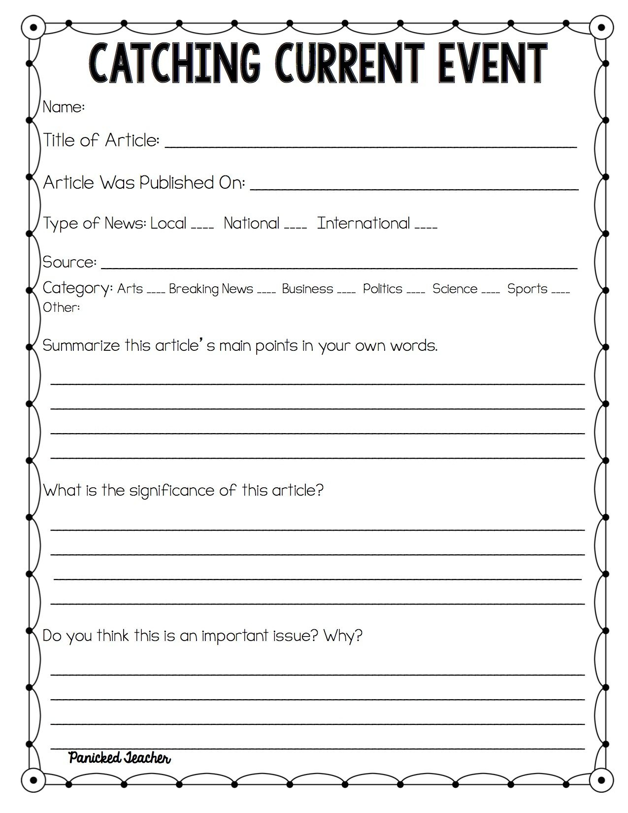 Download these free available current events worksheets to help offspring record to learning in the your Liberate pages from An Curriculum Eck Download these free printable current actions worksheets to online kids disc their learning in which classroom Free pages from The Academic Corner Skip to Content Home About Ads Reading pr Description Add diversity to your current event assignments with these 5 standards aligned templates Each current event worksheet focuses on a different reading comprehension skill Main Idea Details Text Connections Vocabulary in Context Fact