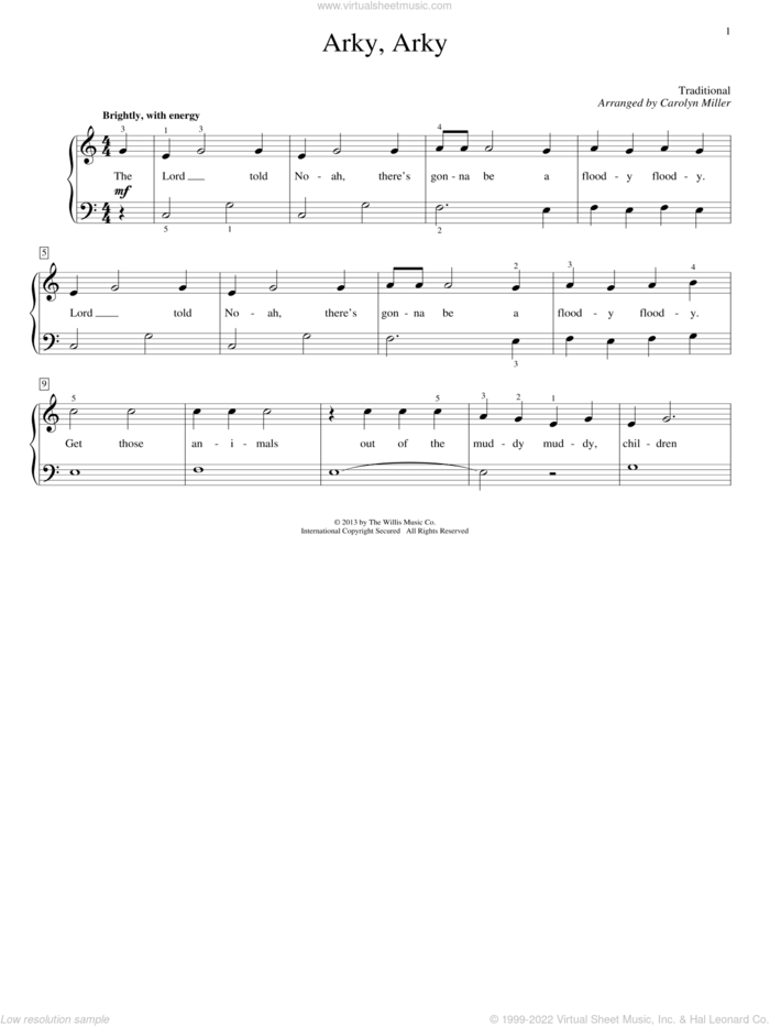 Miller Arky Arky Sheet Music For Piano Solo elementary PDF