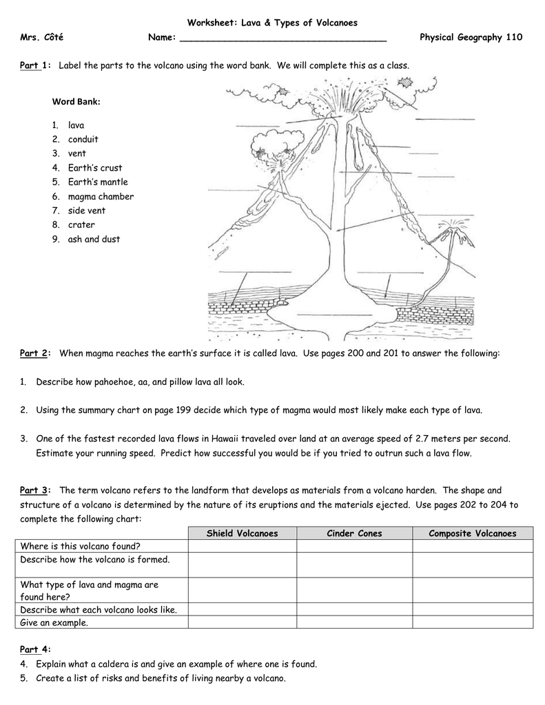 Printable Volcanic Eruptions Label Worksheets For Fourth Grade