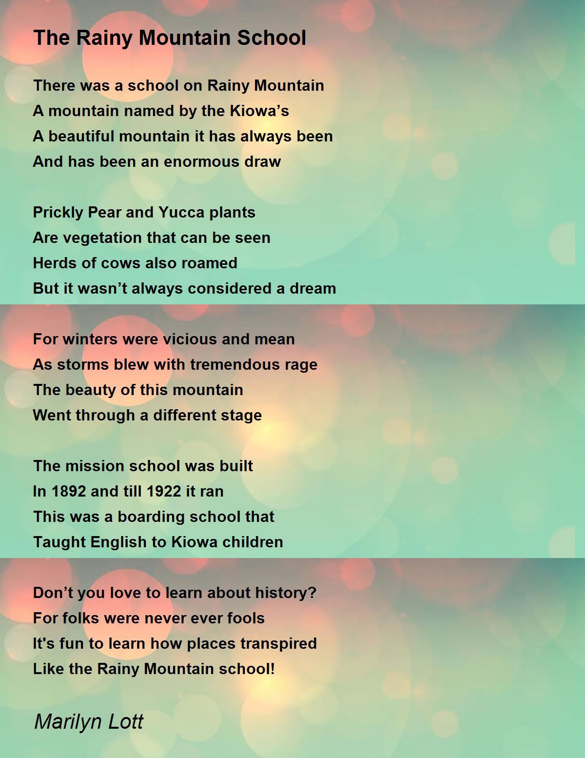 Rainy Mountain Cemetery Poem Printable